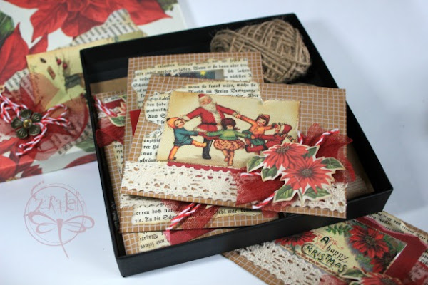 En este conjunto se me ocurrió poner tarjetas y también etiquetas y cuerda para los regalos.