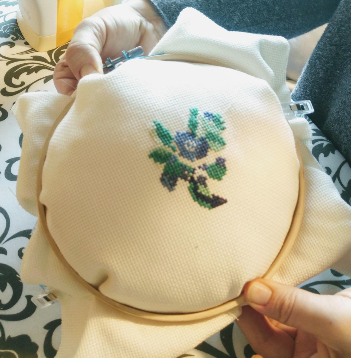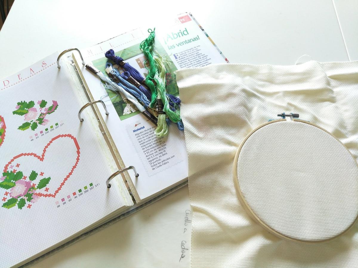 Una vez elegido el dibujo, solo necesitáis tela de panamá o cañamazo para hacer el dibujo, un bastidor mediano e hilo de bordar.