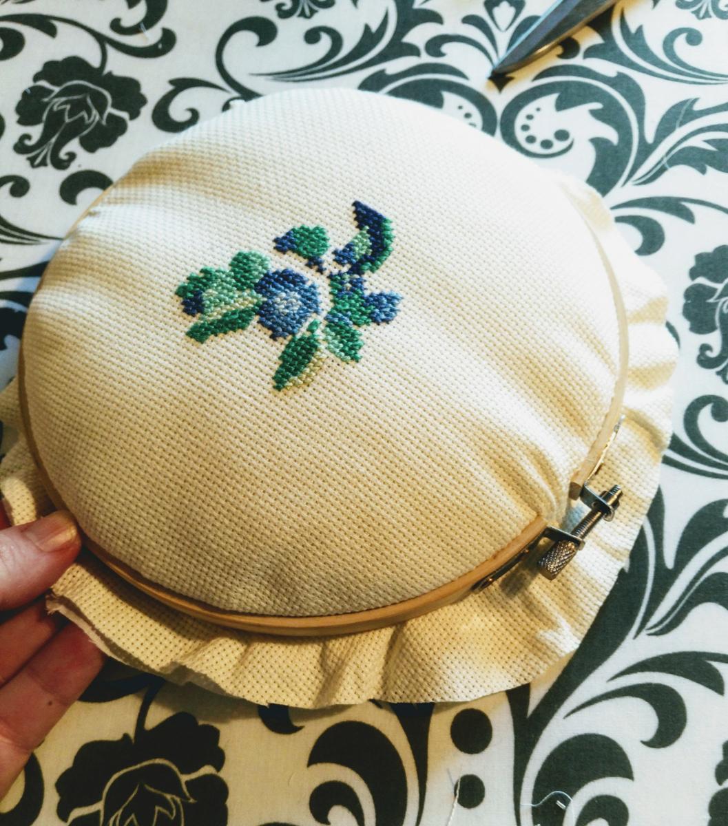 El primer regalo DIY que os traigo es un alfiletero hecho en un bastidor con punto de cruz y que puede llegar a ser el sueño de cualquier costurerx, porque tiene mucho espacio para agujas y alfileres.
