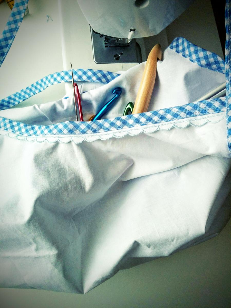 Otra gran idea es hacer una bolsa de tela, tipo camiseta, para labores o para llevar en el bolso por si nos paramos por el super a comprar un par de cosas que nos faltan y que nunca viene mal.