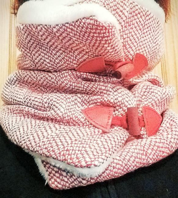 También podemos hacer una bufanda muy calentita, forrada con coralina y de tela de tweed o escocesa, que tan de moda está este año. Es un regalazo para esta Navidad y la podéis hacer en un momento.