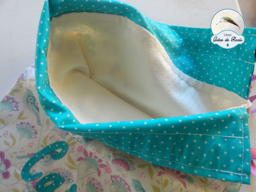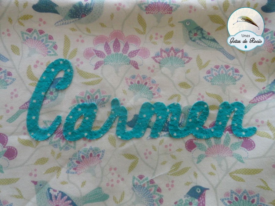 Le he preparado este detalle con su nombre en tonos algo alejados de lo clásico. Pienso que una taleguilla siempre es útil y no importa tener varias si llega el caso.