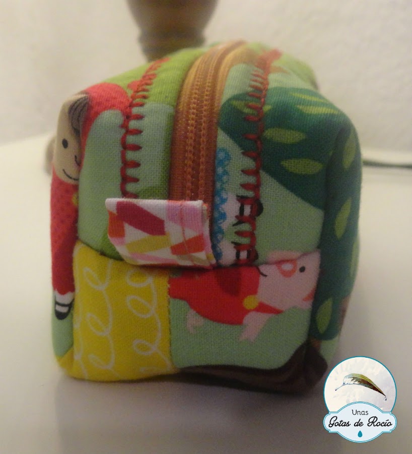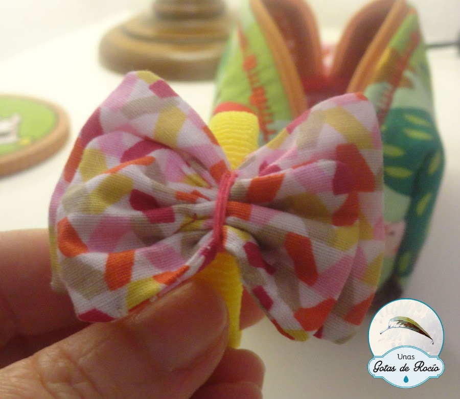 Y dentro del estuchito coloqué un coletero que preparé con la tela de las cintitas de los extremos del estuche.