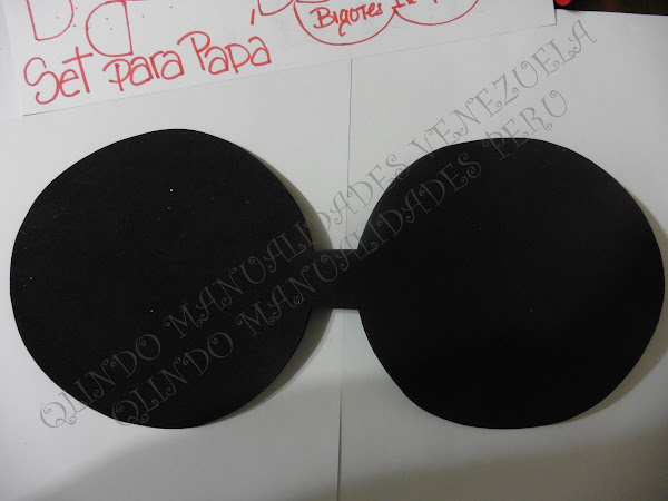 1. Cortar dos circulos en microporoso negro y unirlos con una tira del mismo, como se muestra en la foto.