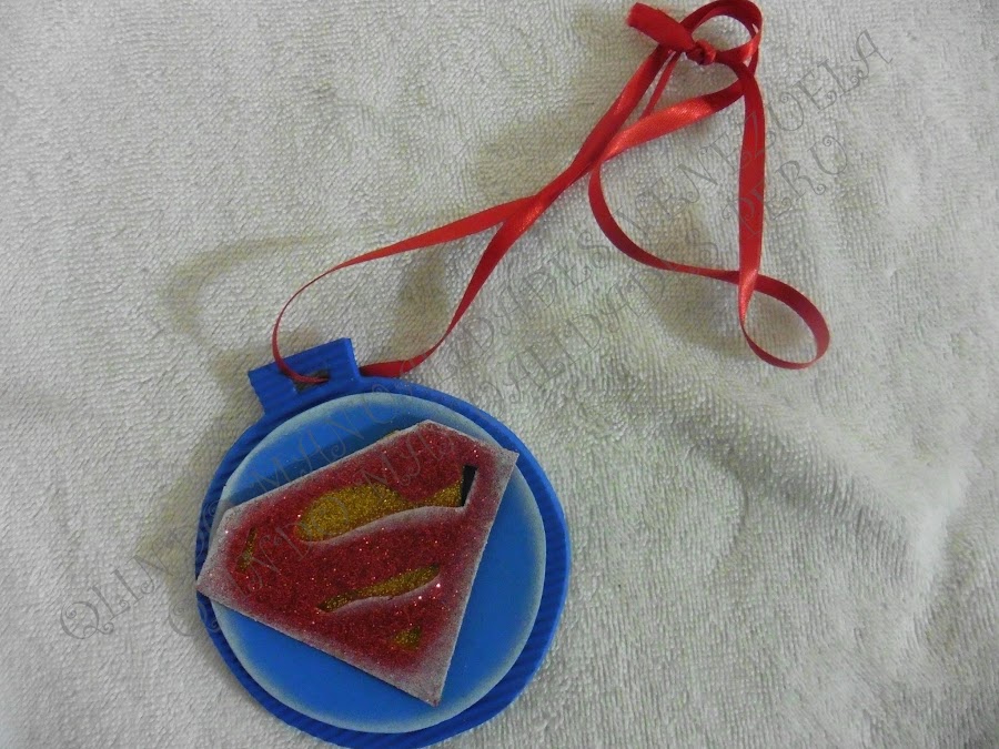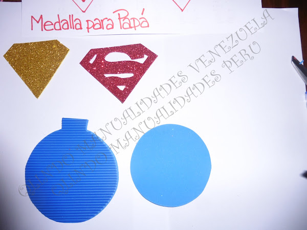 4. Hacer un orificio en la parte de arriba de la medalla e introducir una cinta roja, de esta forma queda lista nuestra medalla de SUPERPAPA...