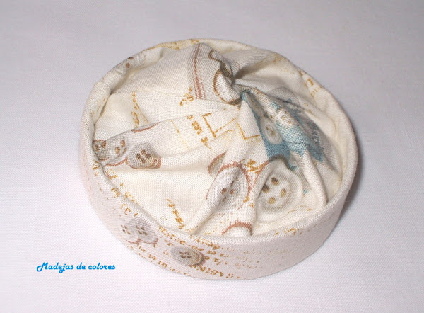 Aquí abierto, se puede apreciar mejor, lo bonita que es la tela, llena de botones.