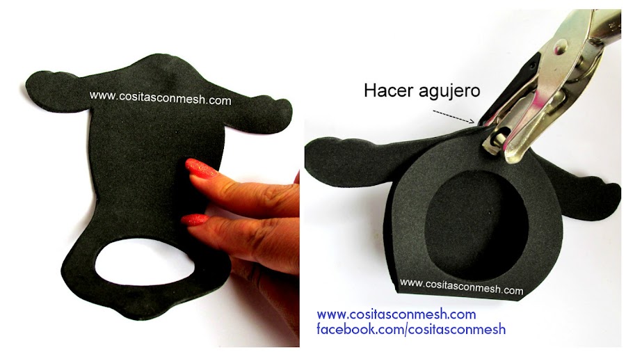 3.- Dobla por la mitad el cuerpo y juntalo para hacer un agujero en la parte superior.Usa un perforador .