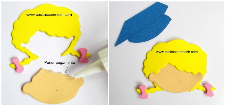 6.-El cabello lo puedes hacer en foami amarillo, marrón, negro o rojo.