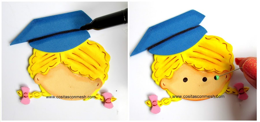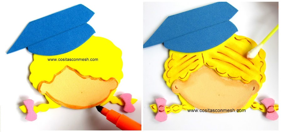 8.-Pegamos el birrete de recién graduado, lo hice en foami color azul.
