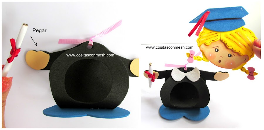 Amigos, en este mes de junio en México, es el fin de año escolar para muchos niños, y es por eso que quería compartir contigo unos pequeños regalos para niños de primaria que podemos hacer para su graduación, si te gusta esta idea, no lo dudes en hacer. Voy a usar foami (microporoso - goma eva ) para hacer una niñita que llevara por dentro un bonito regalo, ya sean chocolates, pulseras, aretitos, moños para el cabello u otros regalitos que quieras dar a tu niña como premio, por terminar bien el ciclo escolar.
