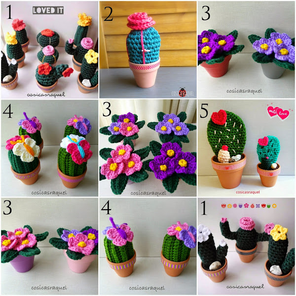 5 Cáctus crochet con corazón pequeño (17*8cm. aprox.) 8â?¬ con el dto 5.60â?¬