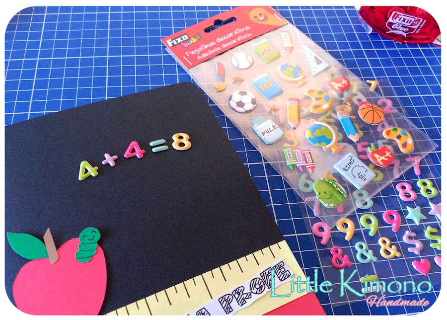 5. Por último decoramos con las pegatinas, yo usé las de motivos escolares y con formas de número, podéis ver todos los modelos con los que cuenta @Fixokids pinchando aquí