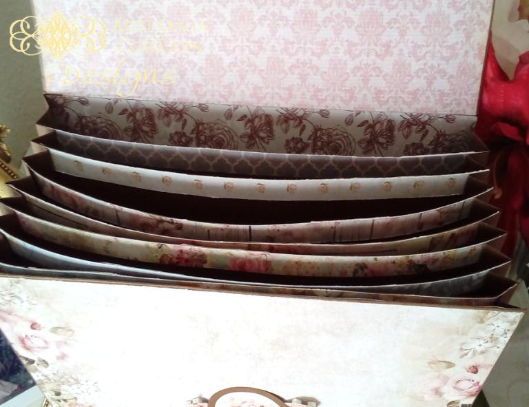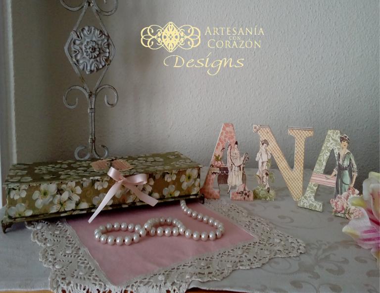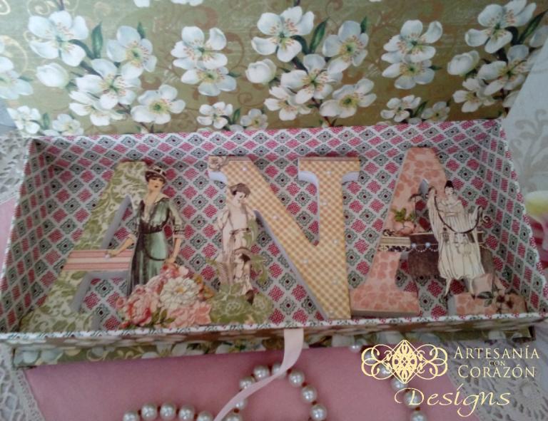 Conjunto de letras presentadas en caja hecha a medida de cartonaje, forrada con papel especial decorativo