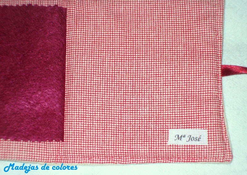 Todo el conjunto está cosido a mano por el derecho de la labor, pasando un pespunte alrededor y luego relleno de floca, para darle ese acabado mullidito. Y a su vez le puse una etiqueta con mi nombre impreso, sin necesidad de papel transfer, con un estupendo tutorial que encontré por la red.