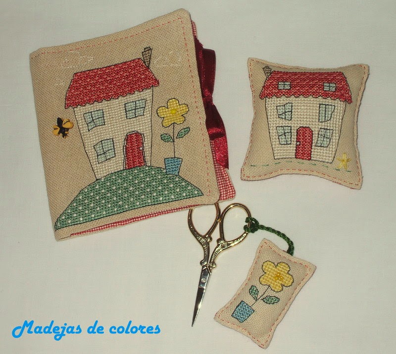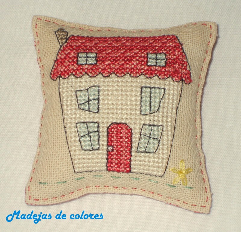 Hice algunos cambios, como el color del tejado que iba en rosas y mis contactos me habían dicho que le gusta el rojo y beige, así que la tela en un principio blanca, la teñí con té, no quedó mal verdad?