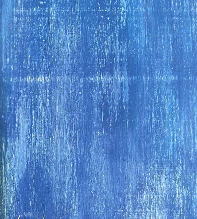 La bandeja, la pinte primero toda de blanco.Luego, el exterior la pinté de azul, utilizando, dos tonos, y luego decapé para que saliese parte de la pintura blanca de la base.