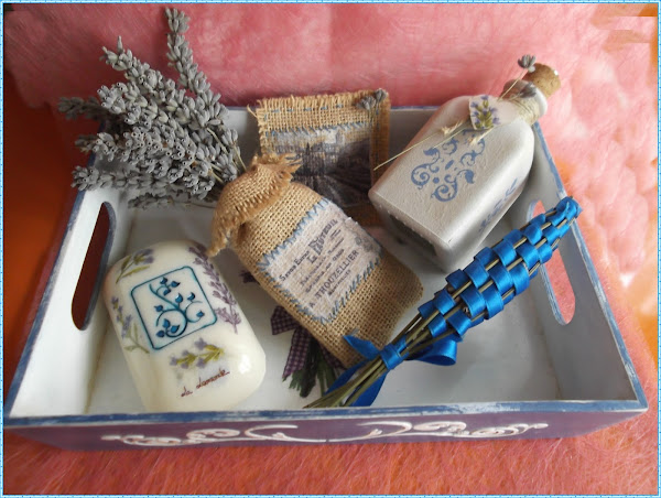 Dado que en el jardín tengo la planta de lavanda, se me ocurrió hacer un trabajo en el que pudiese utilizar las flores de esa planta, un perfume que a casi todo el mundo gusta y que mi trabajo girase en torno a esa planta y al color de la misma. Así que el color azul, predominaría y los elementos perfumados también.