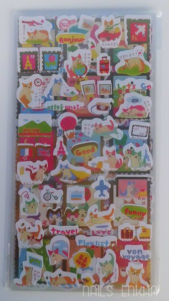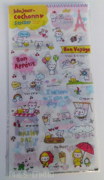 De las pegatinas que venden en la tienda me pedí las Bonjour Couchon y las Travelling Cat que ambas contienen cada paquete seis páginas.