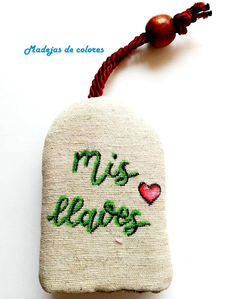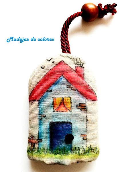 Como este llavero, donde combino costura con lapices de colores, con una bonita casita. Mirar el mini botón que puse de pomo a la puerta.