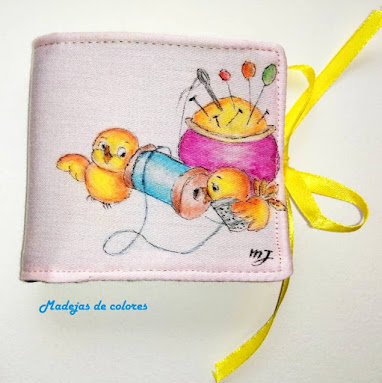 Un guarda-agujas con mismas técnicas, con unos adorables pájaritos con elementos de costura.
