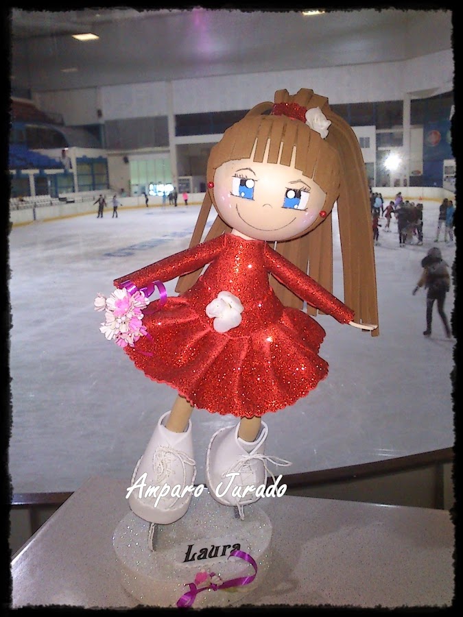 Regalo de AmparoPor último y no por ello menos importante, os enseño la fofucha que mi gran amiga Amparo le hizo a mi hija Laura. La personalizó según el hobbie que Laura tiene, el patinaje sobre hielo, y veréis que refleja fielmente todos y cada uno de los detalles.