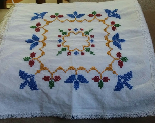 Este precioso mantel bordado por ella. Lo adoro! cada vez que lo veo me acuerdo de Mia.
