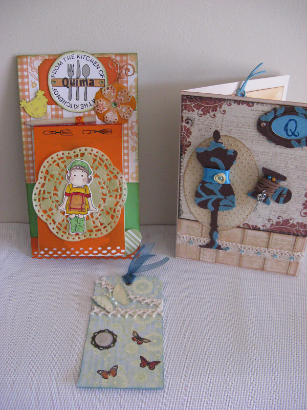 I avui al migdia quan he arribat a casa , tenia tres paquets esperant-me sobre la taula .Ja us podeu inmaginar amb quina ilusió i emoció els anava obritn, ja que sabia que dintre cada paquetet hi habia uns treballs fets per a mi i amb tot el carinyo del món.