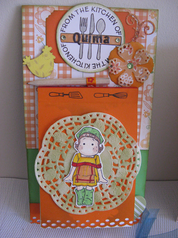 Una CHoppign list per la meva nevera ...............a que es preciosa???????, encara que crec que hem fara pena fer-la servir, ja que hasta les tapes del bloc m"ha decorat. La tarjeta que m"ha enviat es preciosa el devant decorada amb un carret de fil i aquest preciós maniqui amb aquesta combinació blau marro, que tan m"agrada.