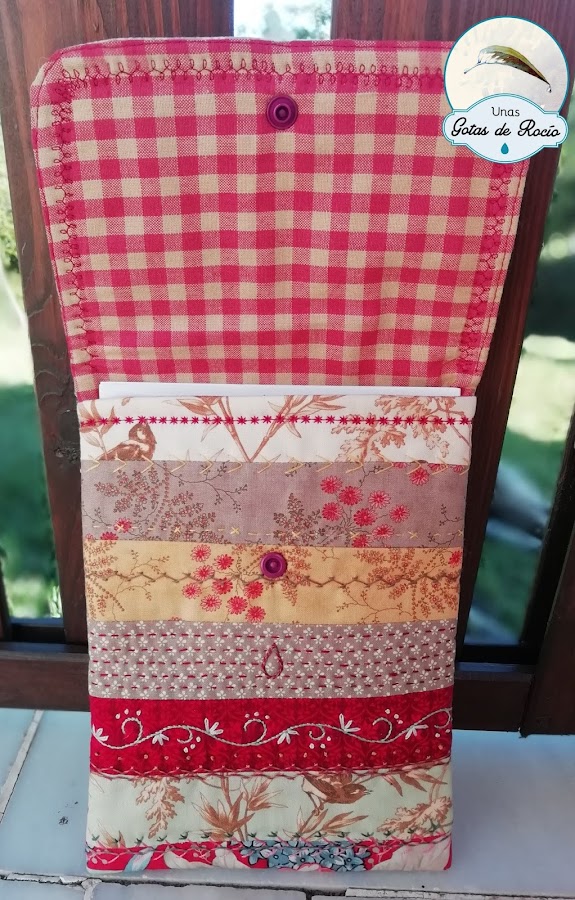 Quise hacer la funda más grande que la regla para que cupieran las instrucciones y otros apuntes que incluyó la mercería. Así lo tengo todo en el mismo sitio.