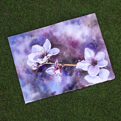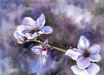 Para no hacer hoy una entrada demasiado larga, voy a aprovechar para enseñaros una acuarelaque hice para regalar a mi padre con motivo del Día del Padre. Al estar a punto de comenzar la primavera, estación de las flores por excelencia, se me ocurrió pintarle un detalle de un almendro en flor, como símbolo de la vida que comienza en la época primaveral. Siempre es bonito regalar flores, pero da pena cuando dejan de lucir bonitas y comienzan a ponerse mustias. Así que estas flores durarán para siempre.