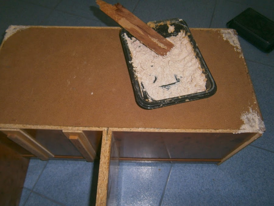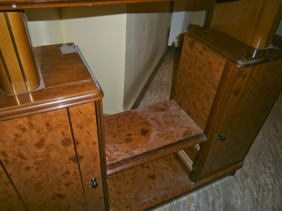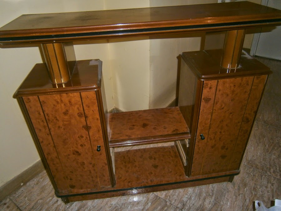 Este es el aspecto que tenía el mueble, en un primer estudio me encontré varias sorpresas, había zonas que estaban tan deterioradas que hubo que rehacerlas, para ello procedí a retirar todo el material dañado y sustituirlo con masa de serrín (cola con serrin ), después lijado, las patas no me convencían y la forma menos ya estaba harta de verlo.