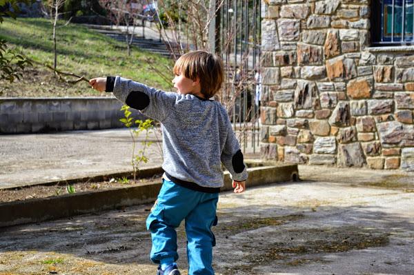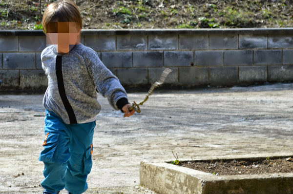 No entiende el jugar sin llevar un palo en la mano, a modo de espada, martillo, paraguas, caballo, escoba de bruja ... no sabéis el sinfín de utilidades que le da a un palo.