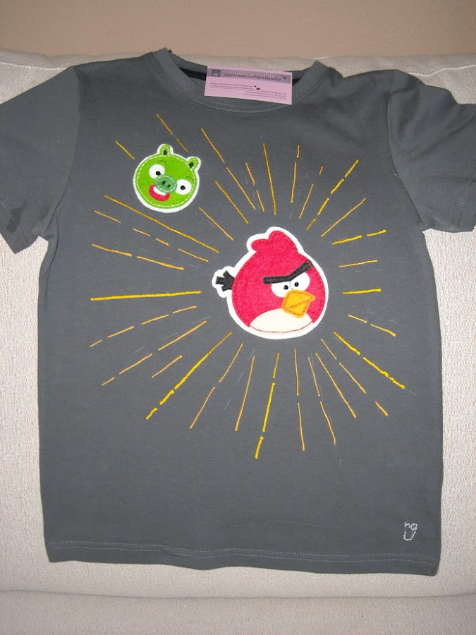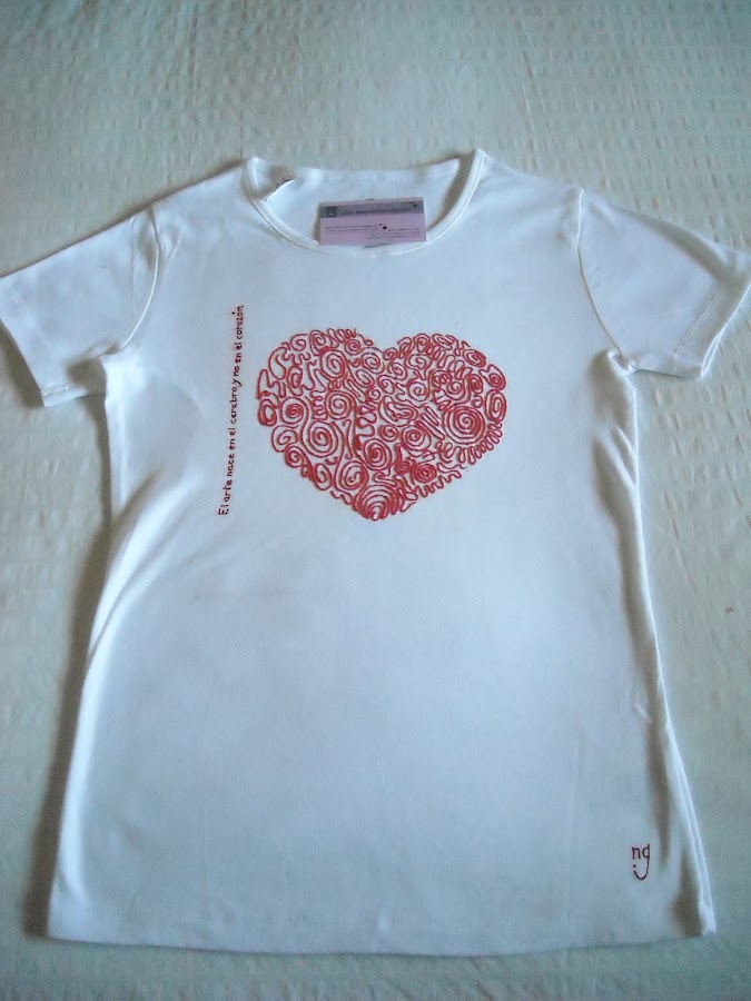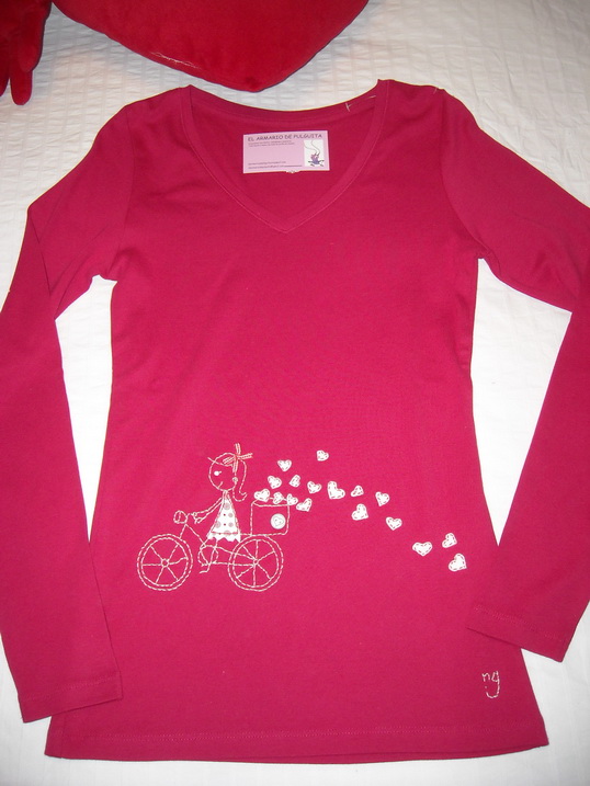 Como ya he dicho, comenzó haciendo cosas para su peque (mi sobrina Nora, a la que he hecho varias cosas de las que os enseño por aquí). También empezó a llenar los armarios de mis peques de sus camisetas cada vez que había alguna celebración de santo o cumpleaños. Esta sería un buen ejemplo: