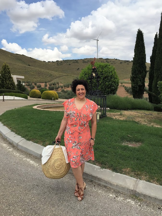 Elegí mi vestido, bolso de mano handmade y el capazo para las cosas del spa y mis sandalias de La loba.