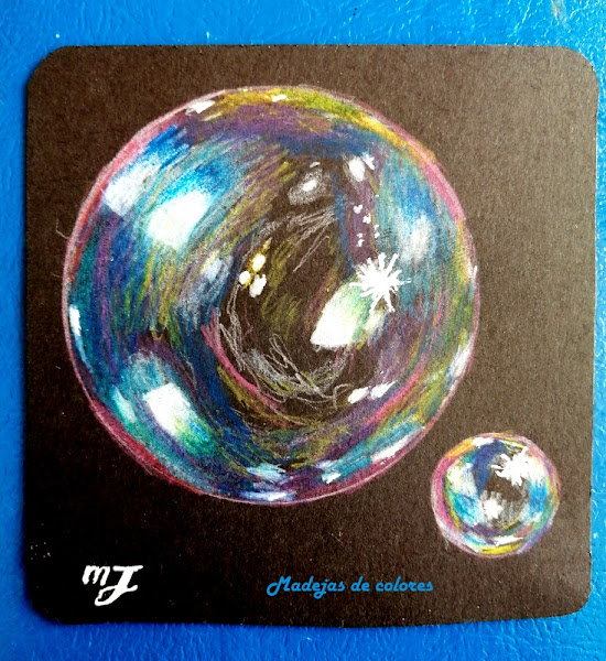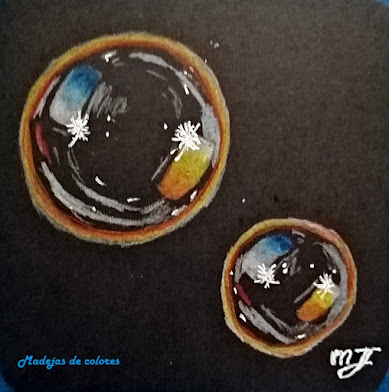 Con lápices de colores y fondo negro, un "intento" de pompas de jabón.