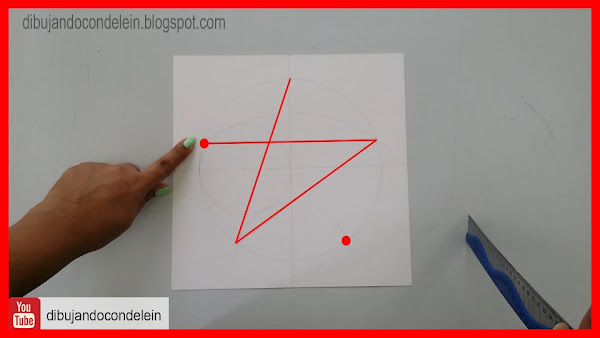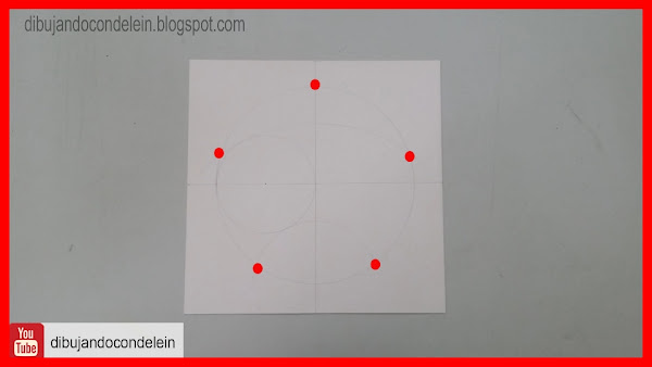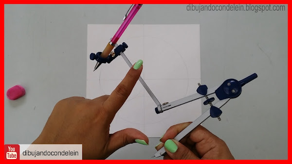 Vamos a repasar rápidamente el paso a paso para dibujar la estrella, primero les cuento que estoy trabajando en una cartulina de 10" X 10" o 25 cm X 25cm, la dividí en 4 primero trazando una linea vertical justo por el centro de la hoja y luego con una linea horizontal igualmente por el centro de la hoja, seguidamente y con la ayuda del compás, trace un circulo con un radio de 10 cm lo que es lo mismo, coloque en mi compás una distancia de 10 cm