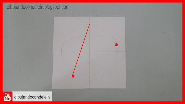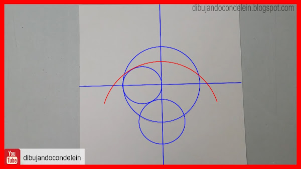 Luego y nuevamente con la ayuda del compás vamos a ubicar la distancia que hay desde la intersección del del primer circulo que trazamos y la linea horizontal hasta el contorno del circulo mas pequeño