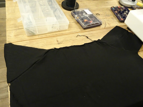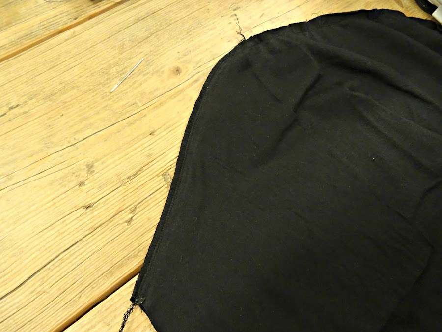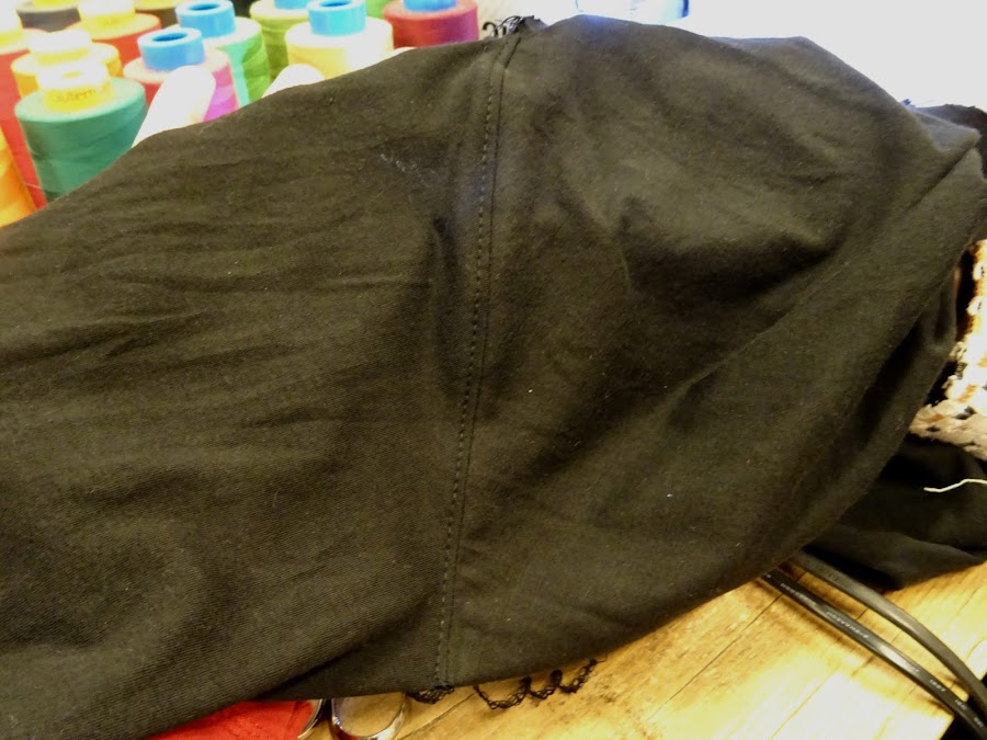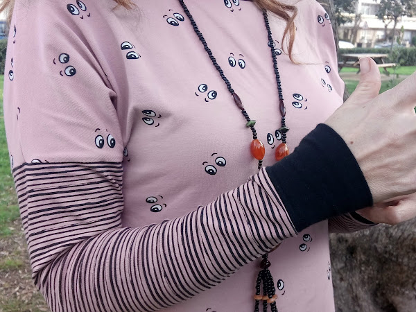Las mangas son cortas tipo 3/4 y si ya me vais conociendo soy friolera por naturaleza, así que ademas de alargar la manga, todavía me quedaba corta, así que añadí un puño negro. Además a las mangas les he reducido el ancho para que quedaran mas estrechas.
