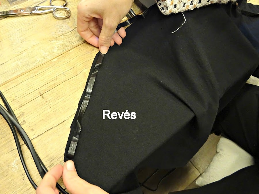 En la revista colocan la cinta por el derecho de la tela, la mía es un pelín mas ancha de la que recomienda la revista así que la he colocado por el revés para que no se me vea.