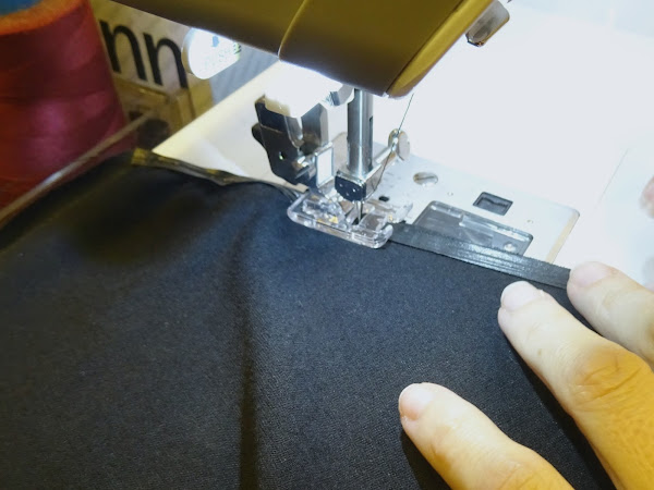 Cosemos la cinta SIN ESTIRAR con una costura recta! si estiramos nos fruncirá la tela. Importante.