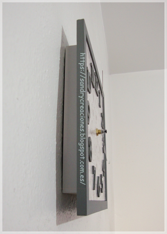 Aquí podéis ver una vista de lado de cuándo terminamos el reloj dónde se puede ver como queda el embellecedor una vez puesto el reloj en la pared: