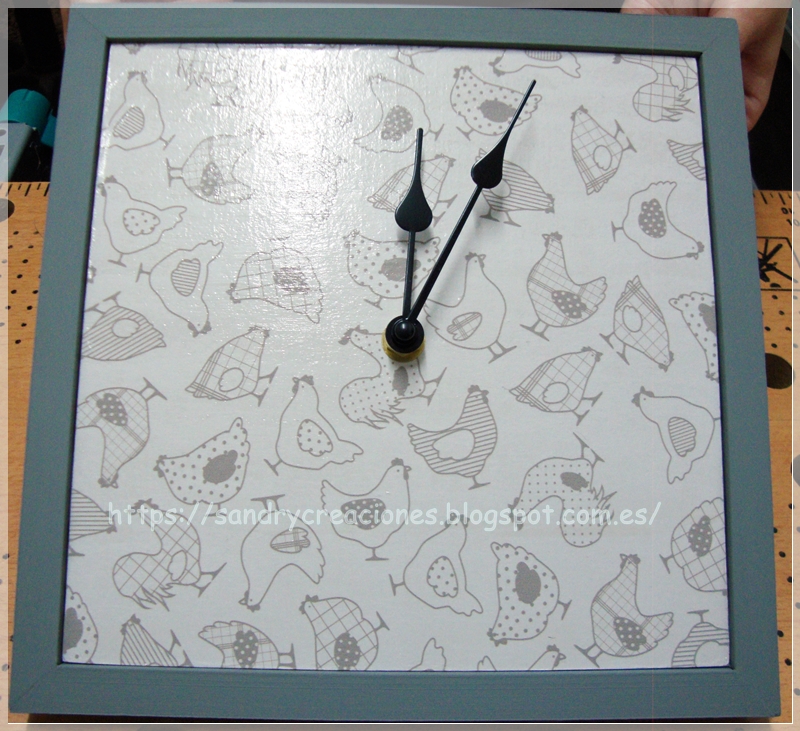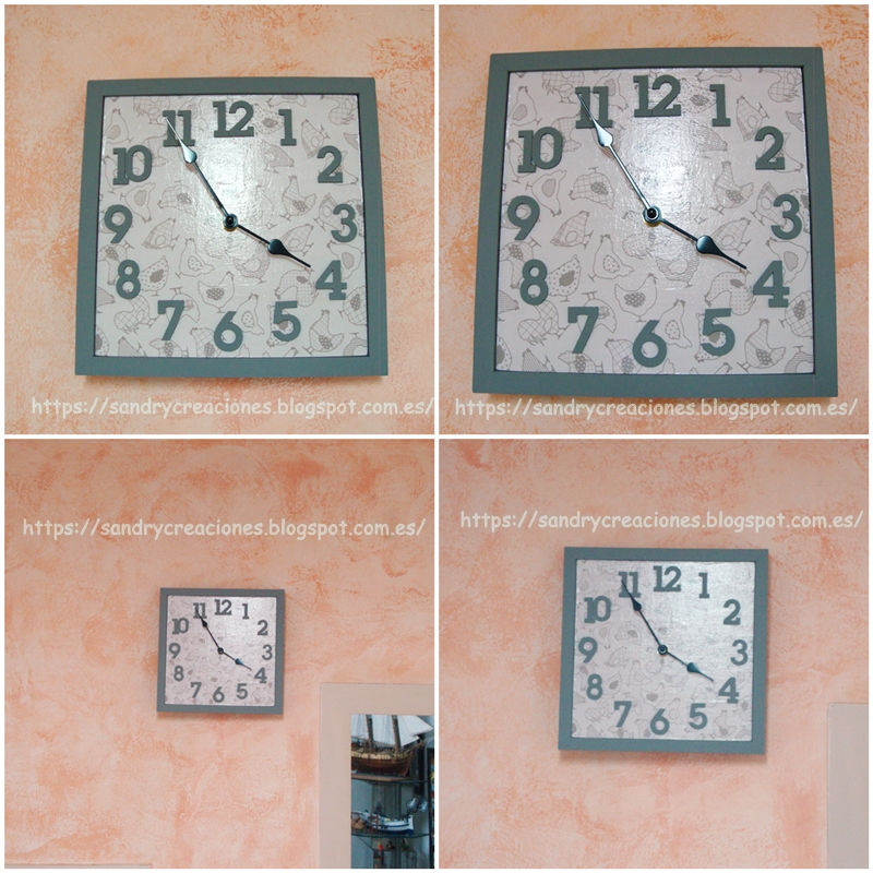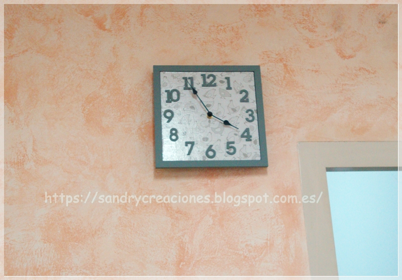 Hace bastante tiempo que teníamos ganas de confeccionar un reloj pero no encontrábamos la oportunidad para hacerlo. Con el reto propuesto por nuestra amiga Amparo del blog "El rincón de las manualidades caseras", cuyo tema era "Decoración" a partir de cualquier material y técnica, se nos encendió la bombilla y pensamos que este era el momento para ponernos con ello y realizar ese reloj que teníamos en mente desde hacía bastante tiempo. Además, hacia tiempo que queríamos cambiar el reloj de la cocina que esta ya bastante viejito y feo por lo que nos decidimos en hacer un reloj para la cocina. Sabíamos que nos volveríamos a meter en líos, que nos supondría bastante tarea y que volveríamos a ir justos de tiempo (cómo de costumbre ), pero parece que nos gusta ir al limite, así que hoy recién salido del horno os traemos nuestro reloj y una explicación a grandes rasgos de como lo hemos hecho por si os queréis animar a hacer uno