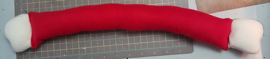 Paño lency o fieltro de color rojo, piel, negro, estampado (para el gorro), blanco peludo.