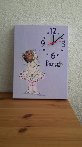 Últimamente no tengo mucho tiempo y voy haciendo cositas sobre la marcha. Esta vez es otro reloj para la amiguita de Elah. Está pintado con acrilicos.