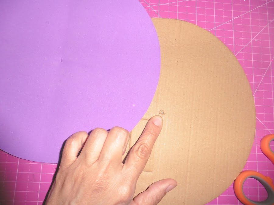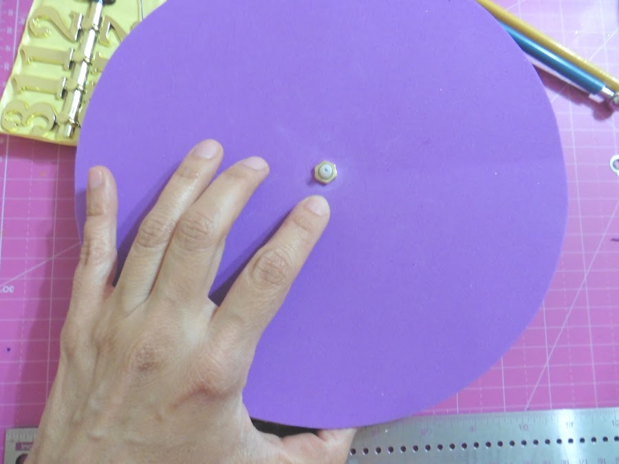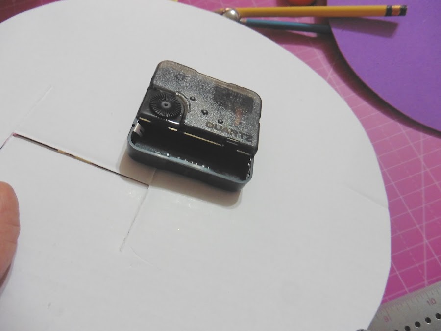 8. A continuación vamos armar el reloj, para ello vamos a cortar un esfera en cartón del mismo diametro de la esfera de microporoso, esto es para darle estabilidad a la hora de poner la maquina del reloj.