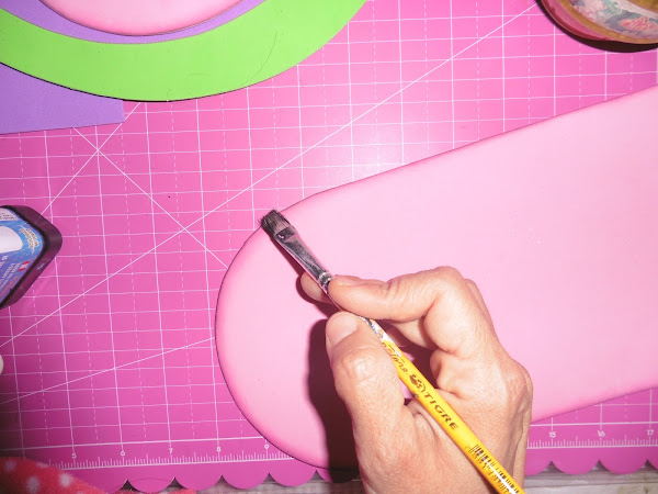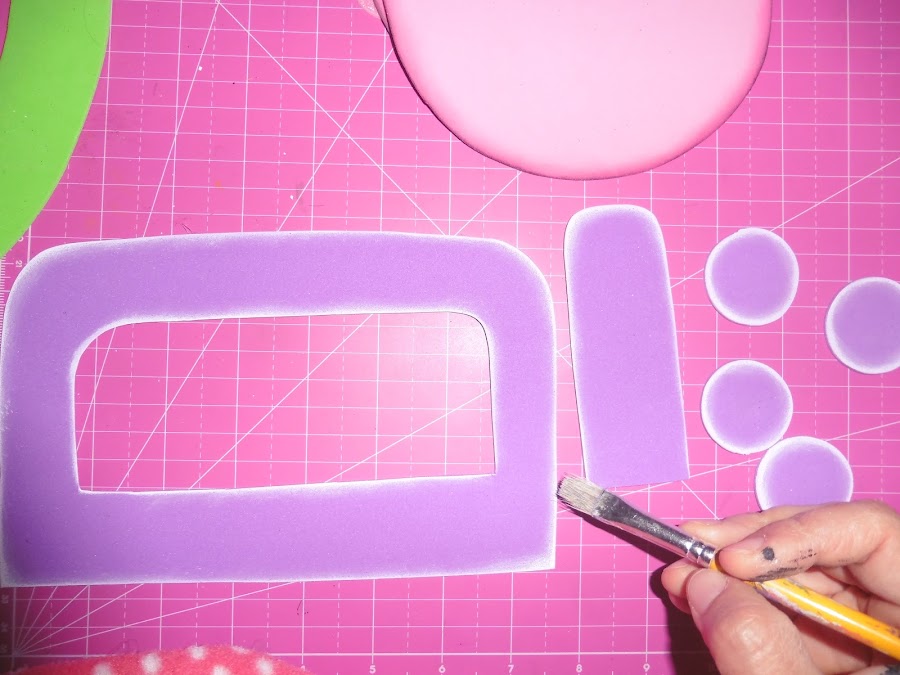 5. Con pinturas acrílicas y utilizando la técnica del pincel seco, vamos a sombrear cada una de las piezas, como se puede observar en la foto estoy utilizando pintura acrílica fucsia para sombrear las correas del reloj.