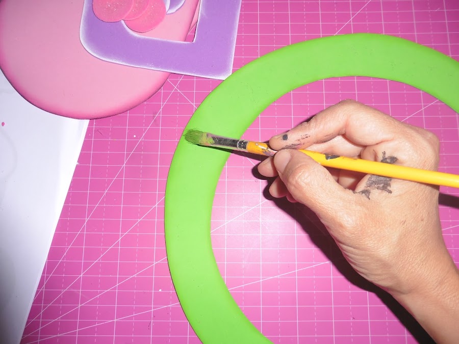 7. Igualmente para el aro que envuelve la esfera del reloj, utilice pintura acrílica verde grama.