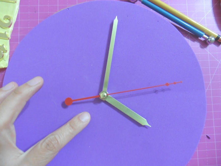 17. A continuación armamos las agujas del reloj, si se te olvida como van armadas, observa cualquier reloj que tengas a la mano.