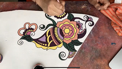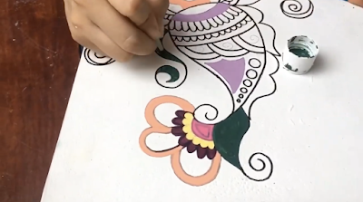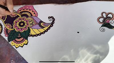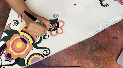 Totalmente pintalo el diseño, volveremos a repasar con marcador permanente negro, en este punto debemos tener mucho cuidado y pulso para no dañar lo que ya hicimos.