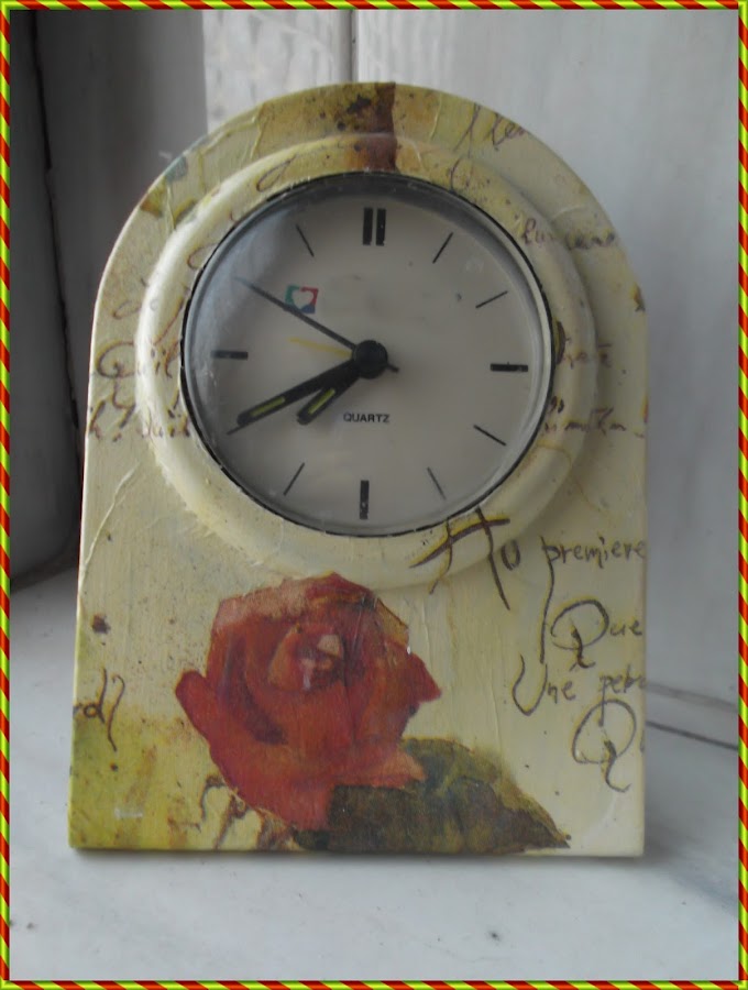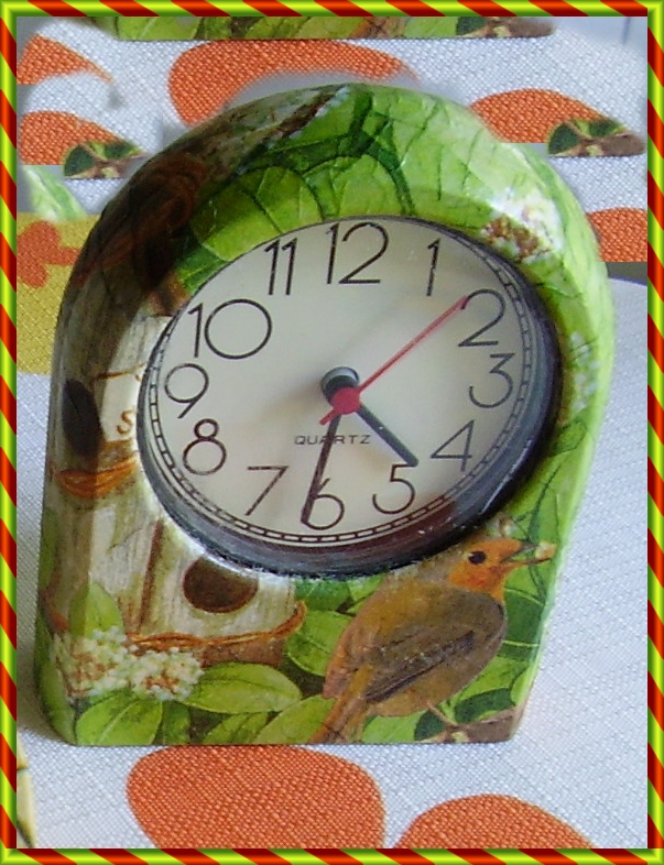 Todos son relojes de publicidad que he adornado con decoupage.